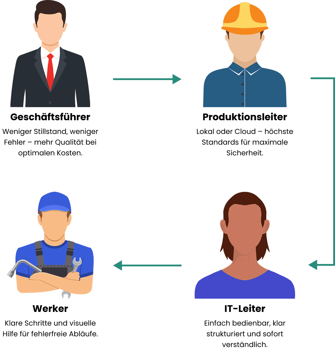 FLUX verbindet Ihr ERP-System mit der Fertigung – für klare Kennzahlen, smarte Visualisierungen und volle Kontrolle in Echtzeit.